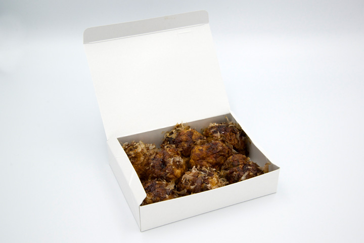 | 紙箱だからたこ焼きが12~15個とたくさん入って、便利です。 |